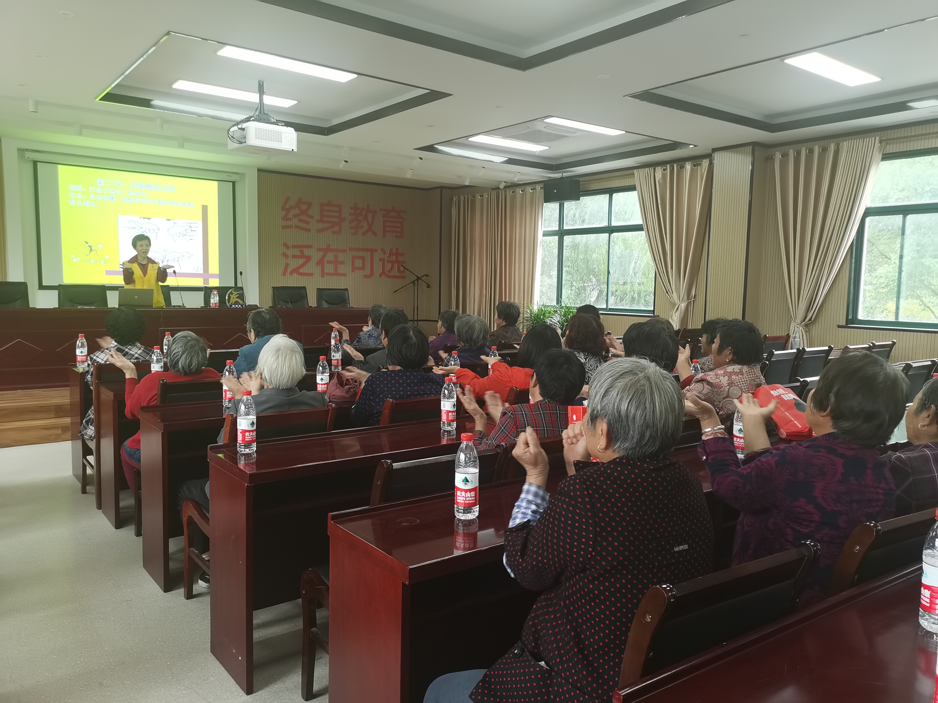 培训会上,老年介护培训师顾秀兰强调了护理工作的重要意义,并以“老人介护,日常保健”为主题进行授课。顾老师结合老年人自身特点,讲解了老年人健忘、睡眠障碍等的各种介护,与老人心理沟通技巧及老人饮食、运动、日常保健等知识。培训内容丰富,讲解具体,实用性强,最后顾老师以一套简单的手指操结束此次培训。