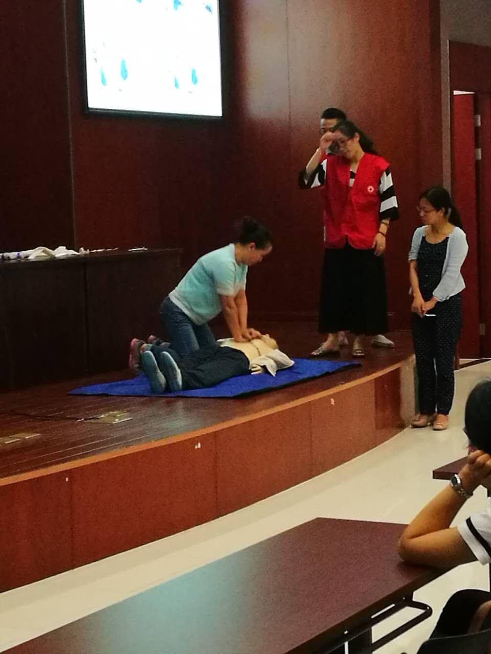 8月25日,小昆山镇红十字会组织镇工业区企业员工开展初级现场救护培训讲座,邀请了救护培训师资陆燕老师和顾邹明医生为园区内60余名企业员工讲解救护知识。
