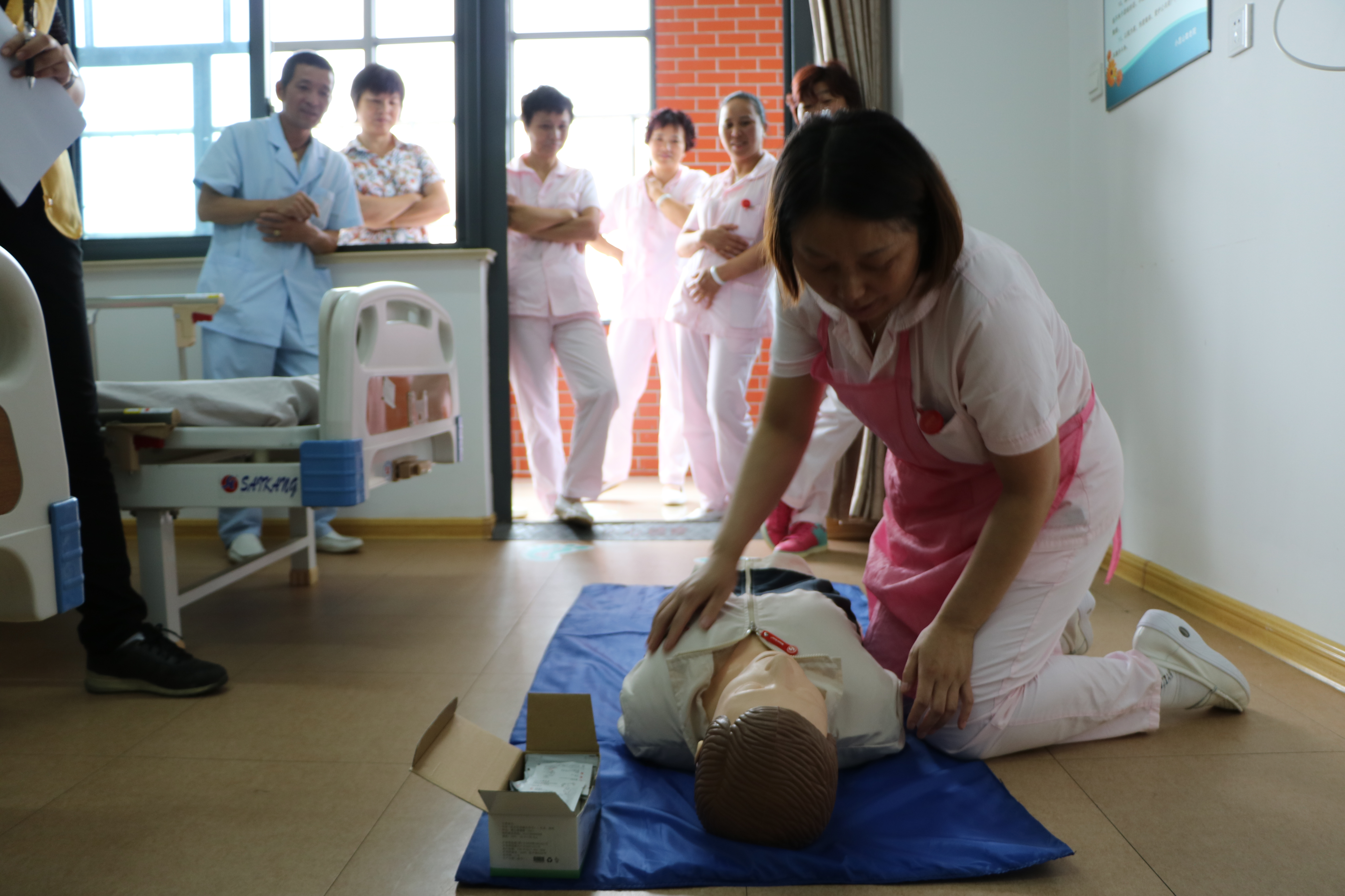 在院内B区三楼内,聚集了数十位穿戴整齐,严阵以待的护理人员,这里即将举行一场心肺复苏急救技能和气道异物梗塞海姆立克急救法应用比拼。比赛过程有条不紊,每一个参赛者都认真完成了自己的项目。随后还在室外进行了火灾灭火逃生演习。通过此次比赛,院内护理员的急救意识和操作技术得到了一定的提高,更能促进护理人员不断学习新知识、新技术,拓展新业务,践行服务新理念,在学中干、在干中学,不断充实和完善自己。