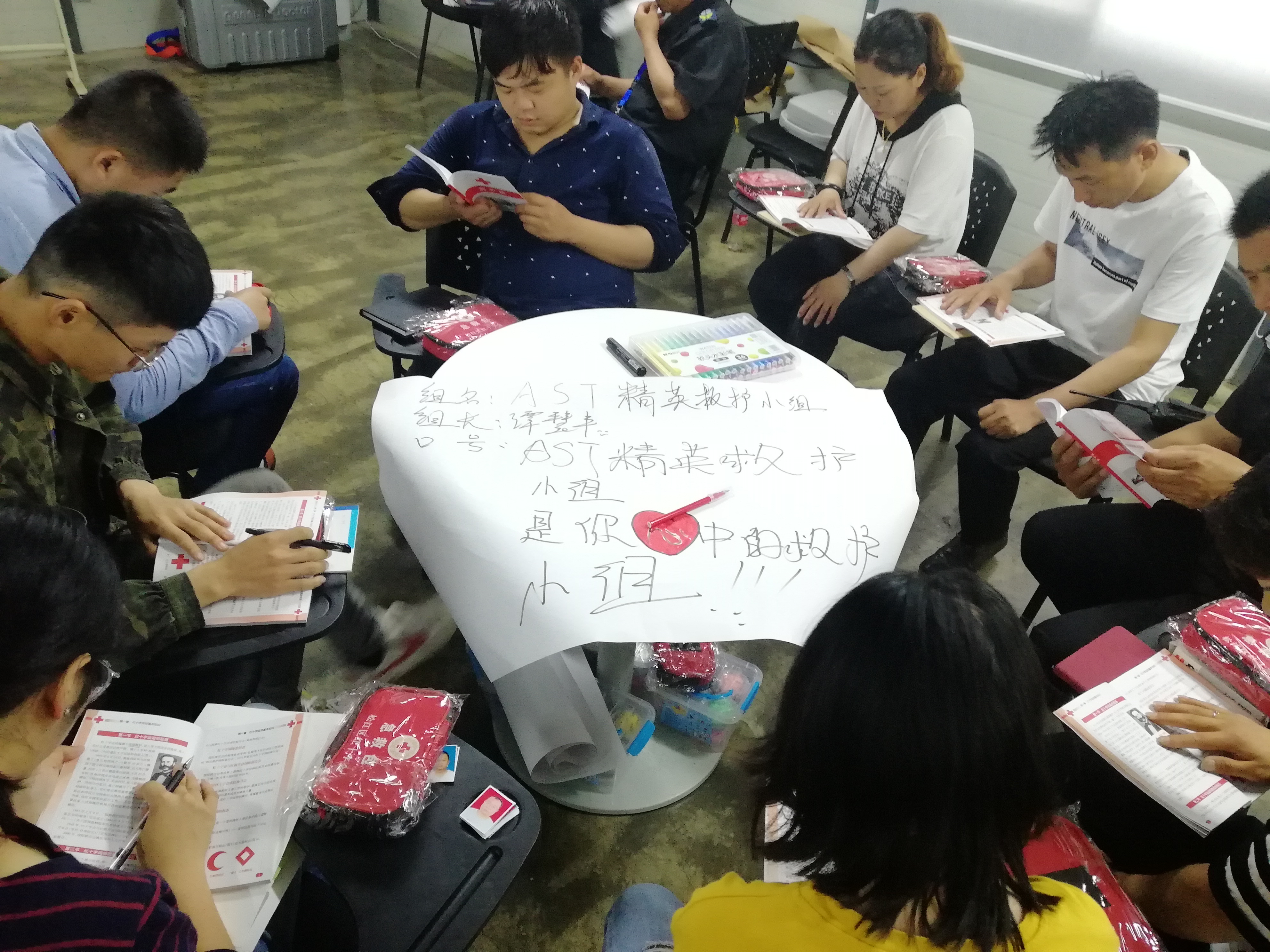 本次培训将学员分成了四个小组,每个小组都有自己的组名和口号,同时,褚老师通过促进式教学的模式让学员们自行预习救护课本,领悟红十字的精神、救护的概念,课上学员们还通过自己的理解,用捏橡皮泥的方式表达了自己对救护的理解,并为本次救护员培训做了总结,进一步激发了学员们的学习热情。