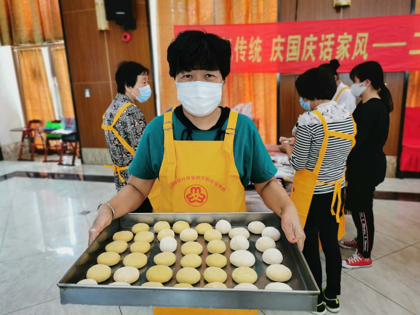 一开始,老师一边简单介绍月饼的来历、种类和制作方法,一边向居民们介绍中秋节的习俗。由于小区居民们大都来自五湖四海,大家也就南北方的习俗差异展开了精彩的讨论,在对话中增长了对传统文化的了解,也增进了邻里之间的和谐。