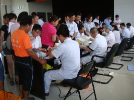 7月25日,小昆山镇红十字会在光塑机械厂,开展了一年一度的无偿献血工作,全镇近300人踊跃报名参加了体检。镇红十字会会长董菁亲临现场。