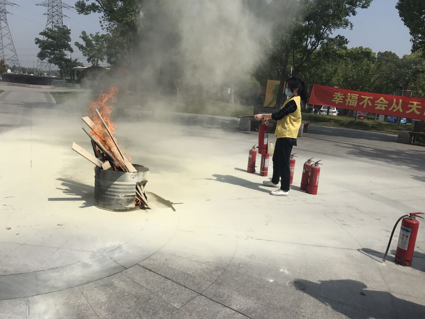活动当天,通过悬挂宣传条幅、发放折页等形式开展宣传活动,让大家更深入地了解安全科普知识,提高防范意识。同时,为帮助居民们掌握遭遇火灾时的自救技能,镇派出所民警为居民们教授演示了灭火器使用方法,从家门口的实地演练中熟悉应对重大火灾事故的应急处置流程。