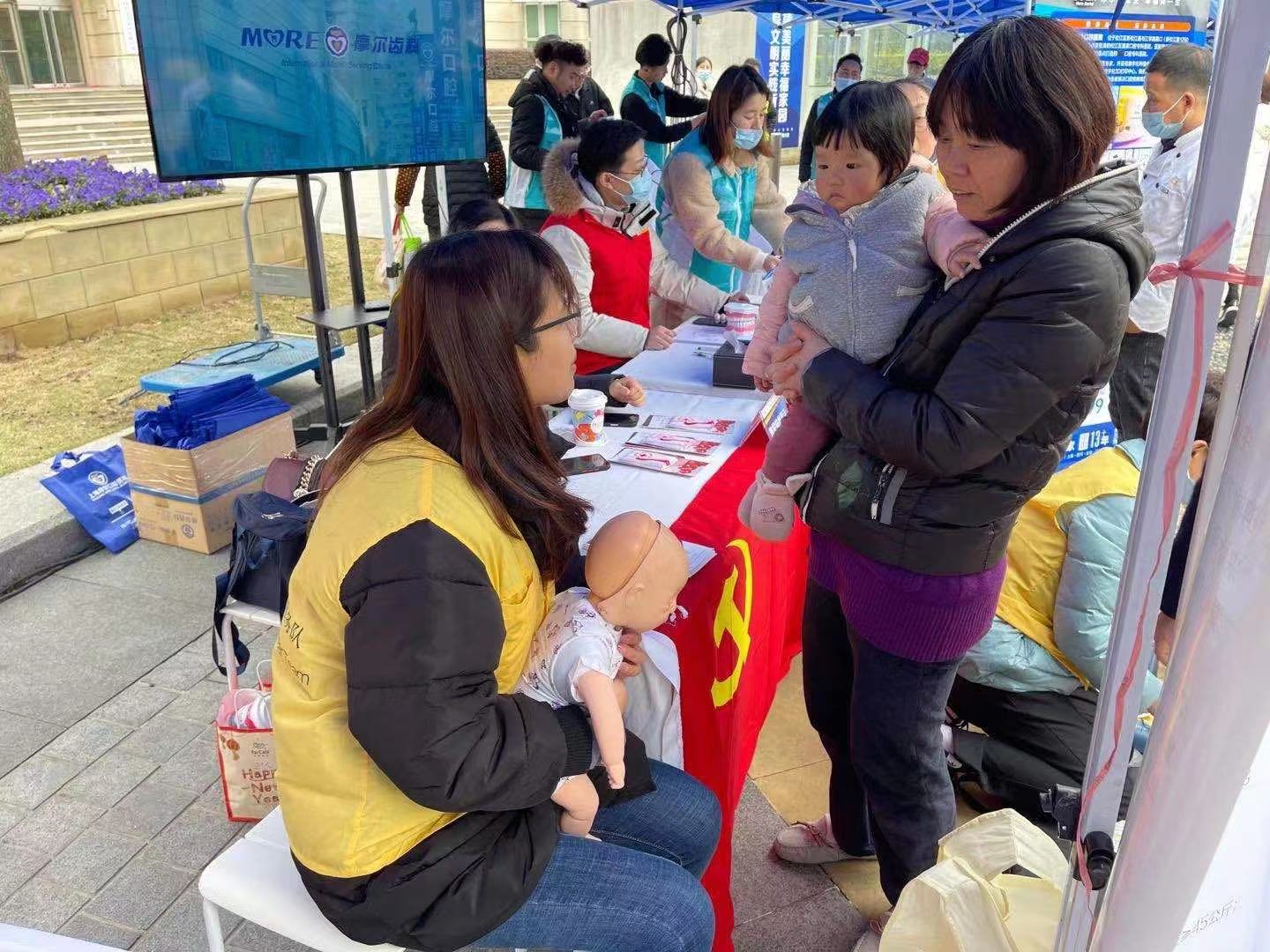 3月5日下午,支部全体党员在泰晤士小镇市政广场开展便民服务活动,宣传红十字运动基本知识、法律法规知识、造血干细胞捐献知识,发放宣传折页;现场进行救护培训(心肺复苏+AED)展示;招募造血干细胞捐献志愿者进行现场口腔入库采集。