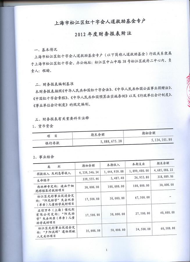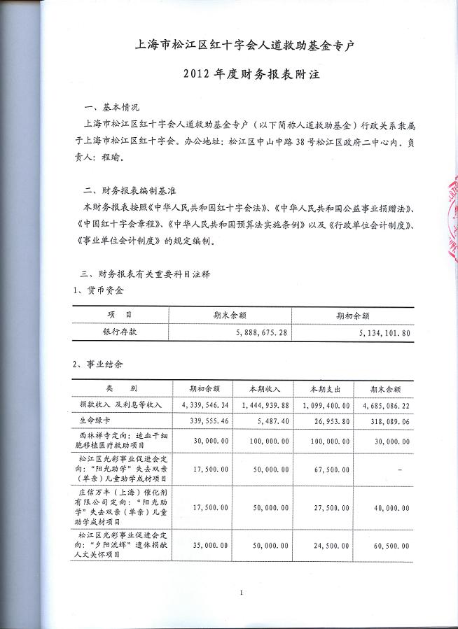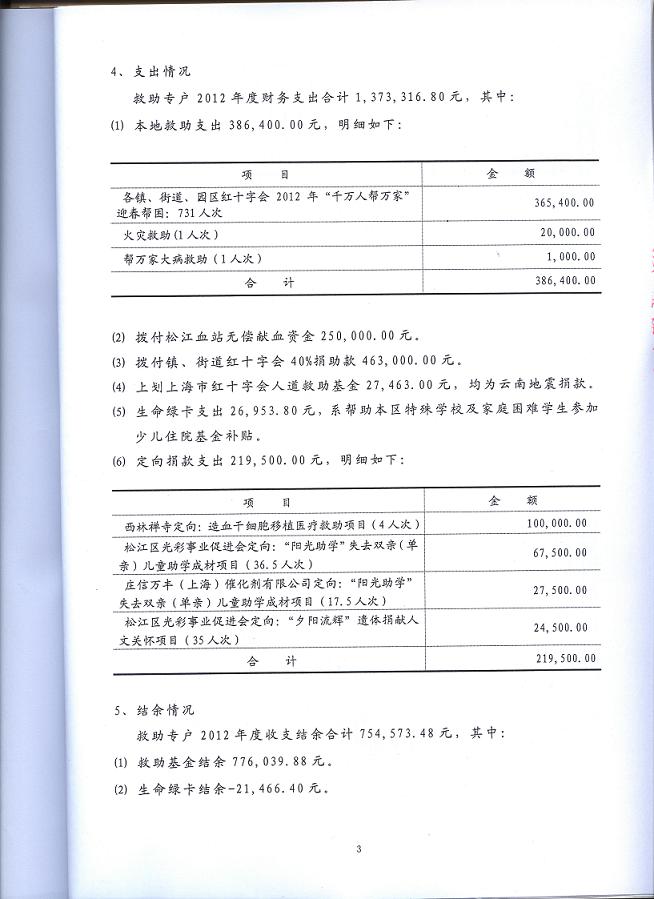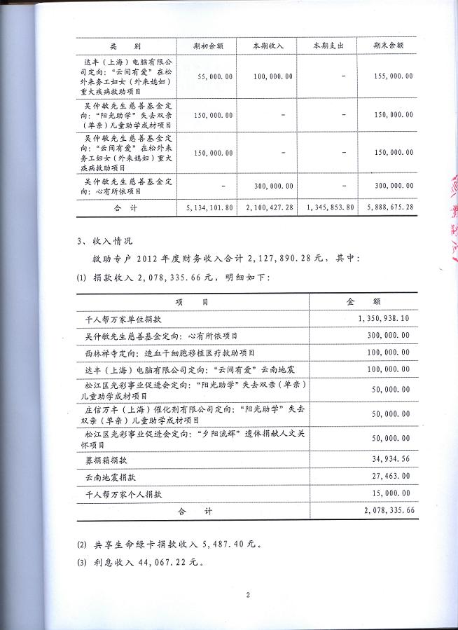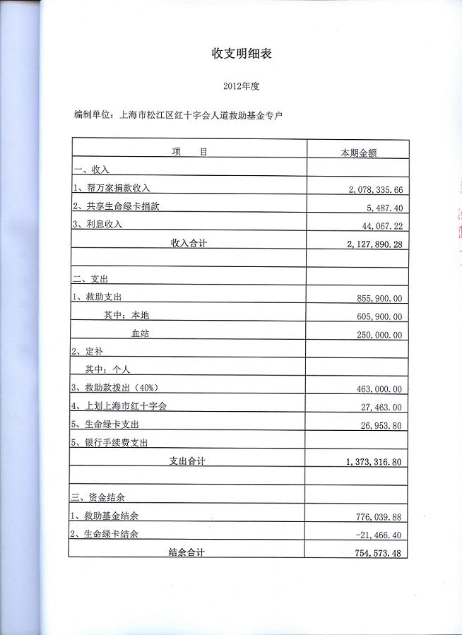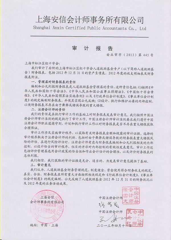 上海市松江区红十字会公示2012年度人道救助基金审计报告