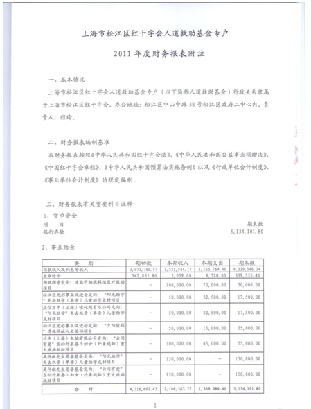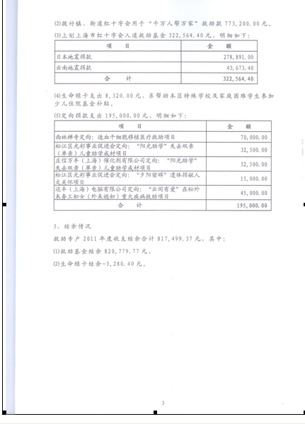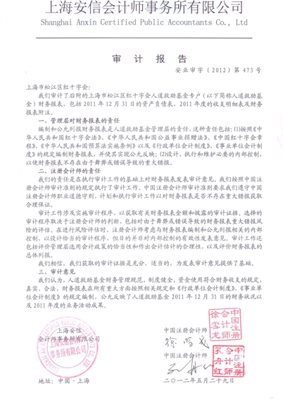 上海市松江区红十字会公示2011年度人道救助基金审计报告