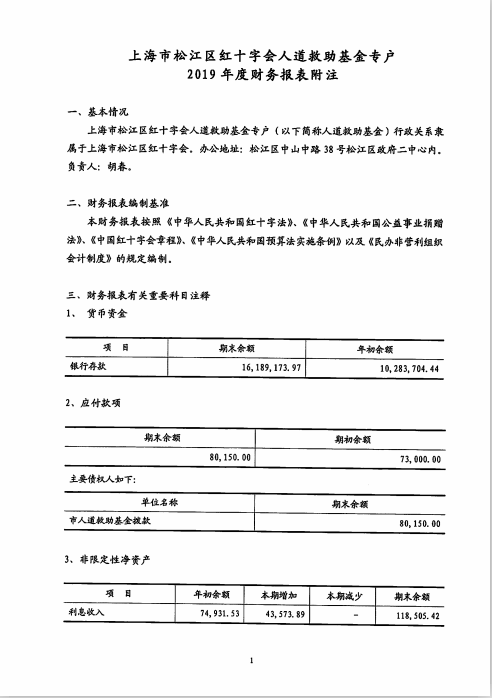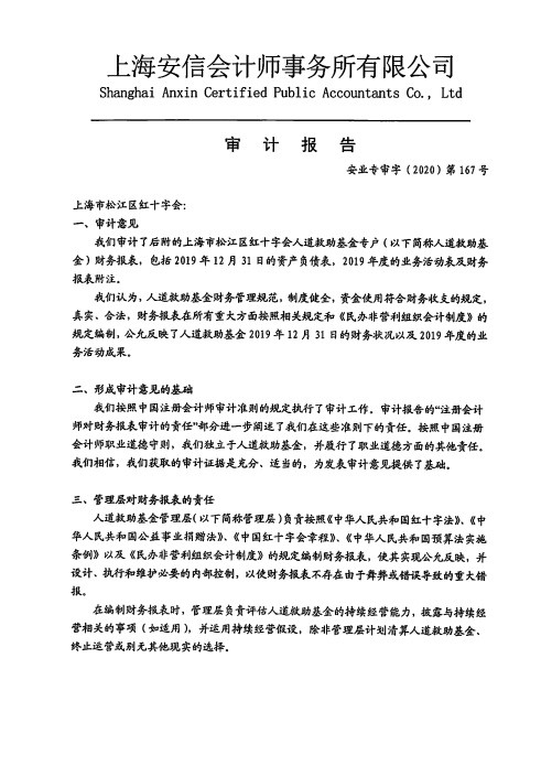 上海市松江区红十字会公示2019年度人道救助基金审计报告