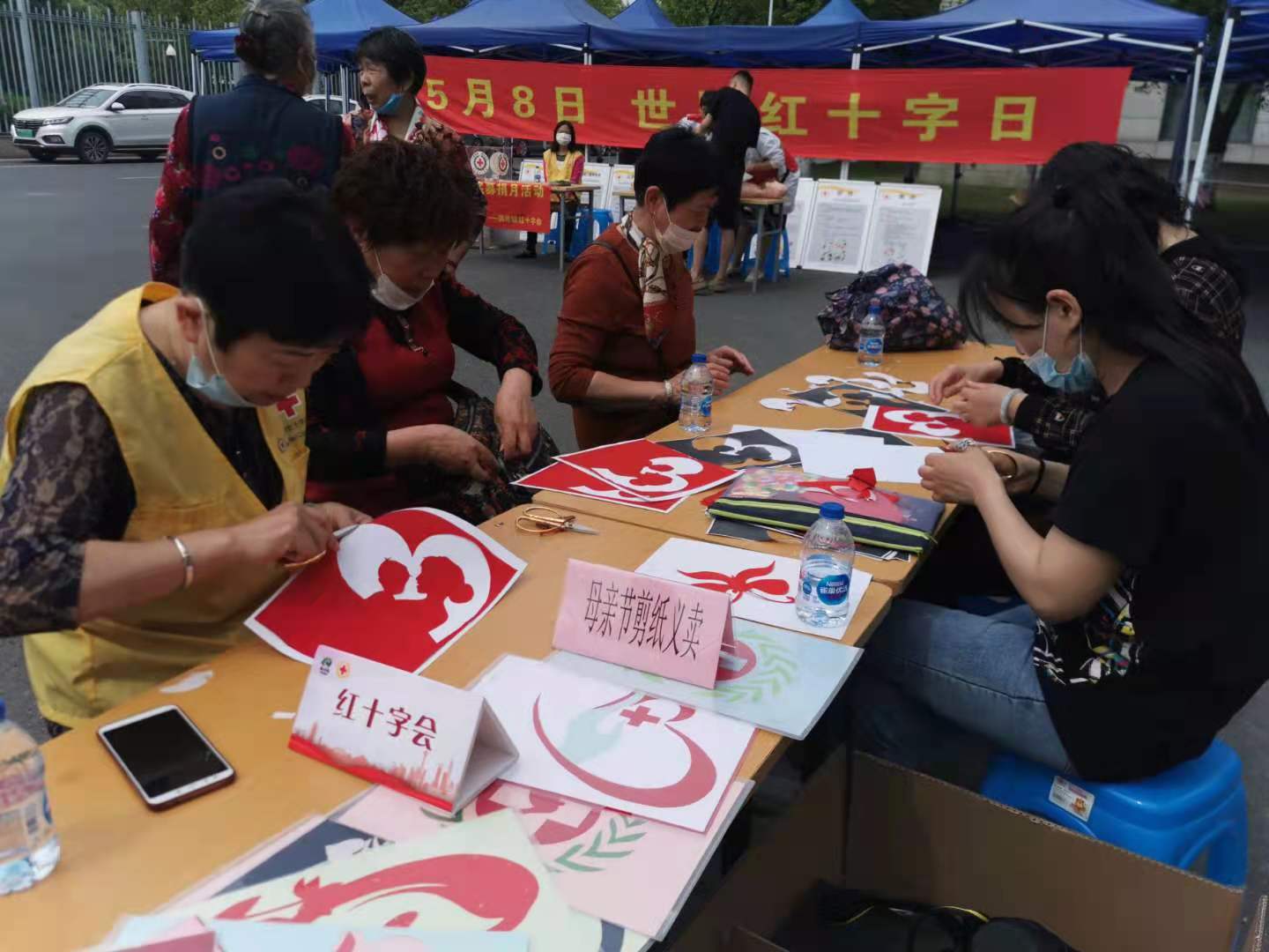 活动现场还组织了“感恩母亲”剪纸义卖、红十字募捐月活动。