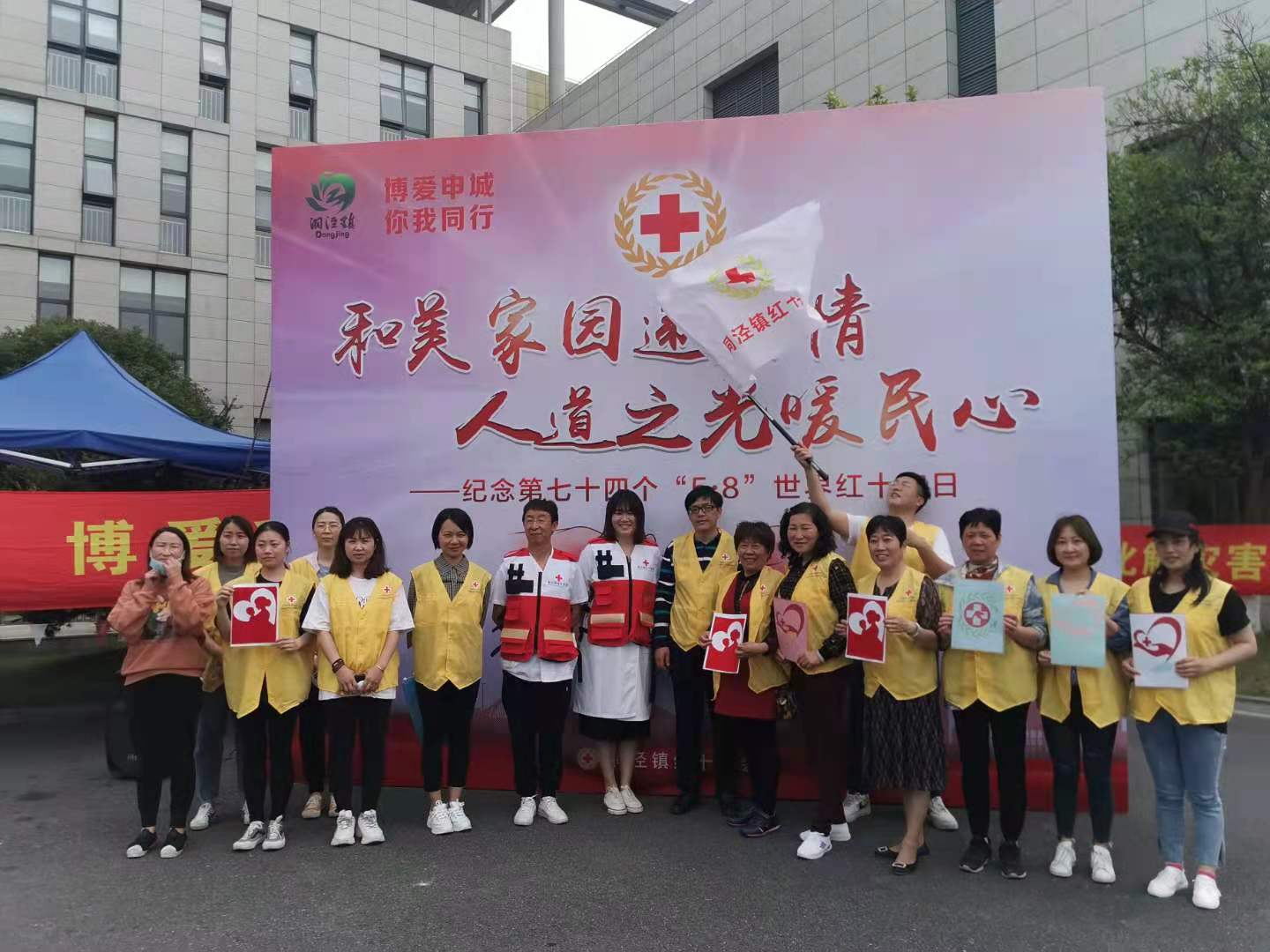 2021年5月8日上午,洞泾镇红十字会志愿服务队在文化活动中心广场开展纪念第74个“5·8”世界红十字日”主题活动。
