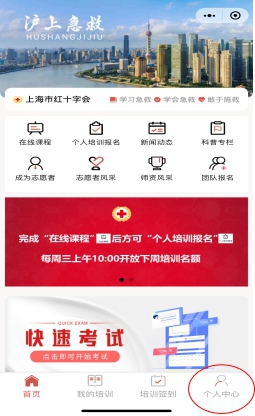 4.考试通过后,点击“个人培训报名”,选择“2024年上海市为民办实事项目‘培训8万名持证应急救护员’”进行报名;