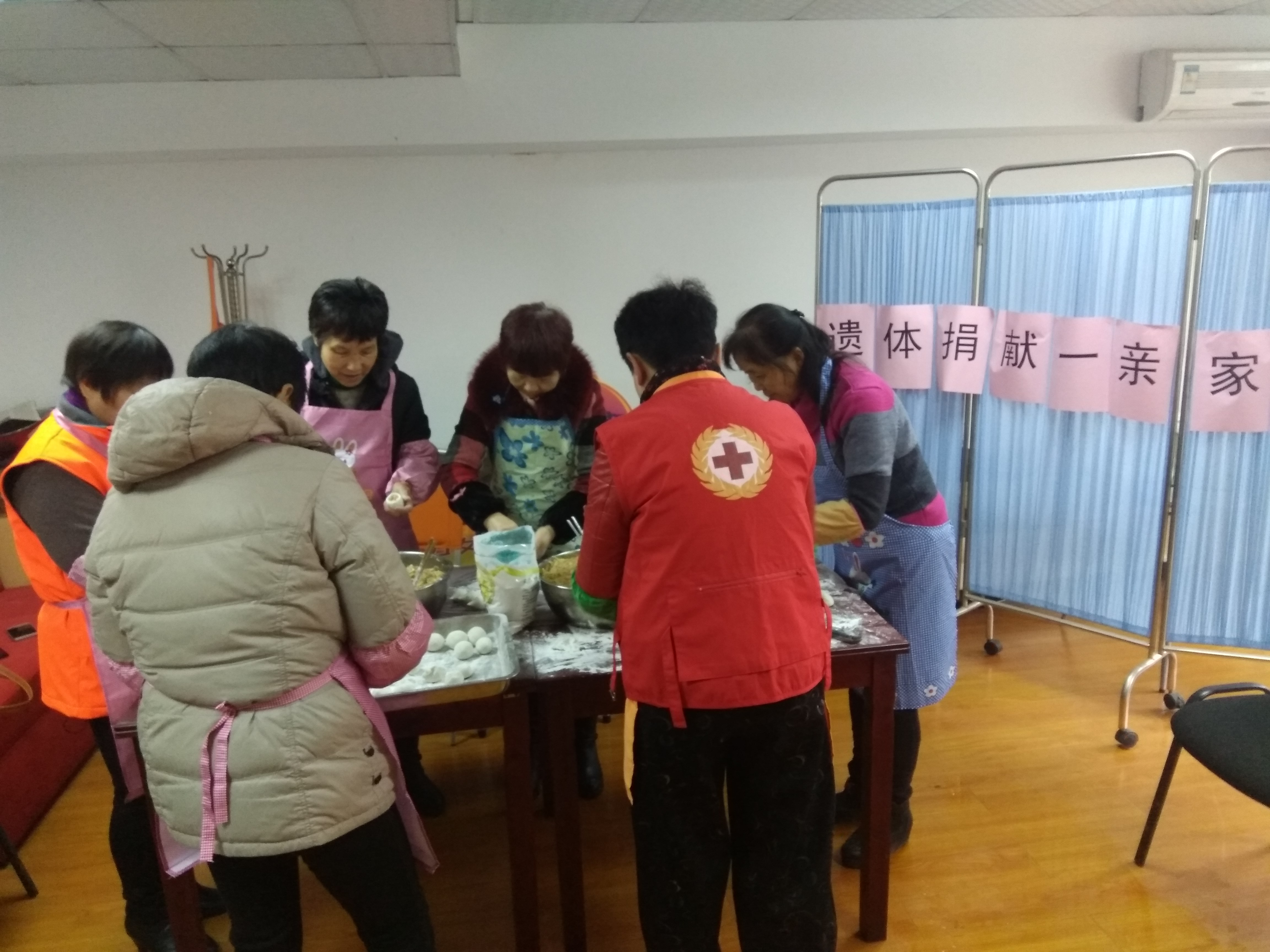 鸡年元宵节前夕,2月9日中山街道红十字会在平桥居委会博爱家园内组织了一次“遗体捐献元宵一家亲”活动,邀请了社区内的遗体捐献志愿者来到居委会,品尝红十字志愿者亲手包的汤圆。活动中,志愿者们有的和面、有的拌馅、有的包汤圆,不亦乐乎,最后居委会工作人员帮忙把汤圆煮熟,让大家陆续品尝,大家都竖起大拇指,非常满意自己的劳动果实。